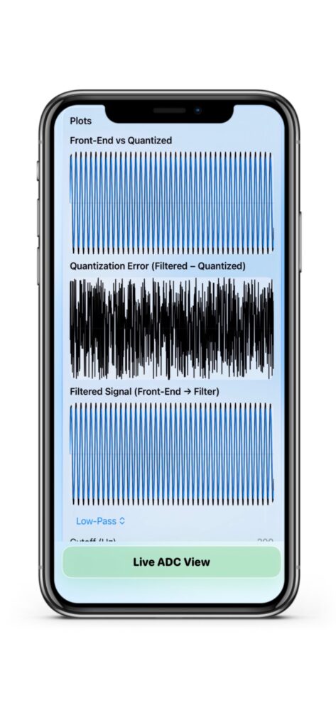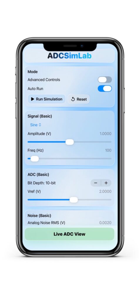 ADCSimLab is a real-time simulation app designed to help engineers and students understand how analog signals behave inside an ADC and digital signal processing chain.